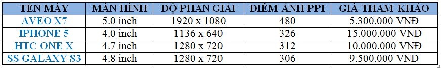 Bảng so sánh với các dòng máy khác trong thời điểm Aveo X7 mới ra mắt :