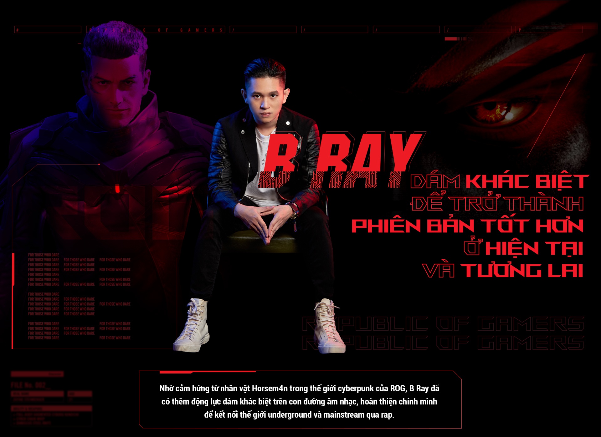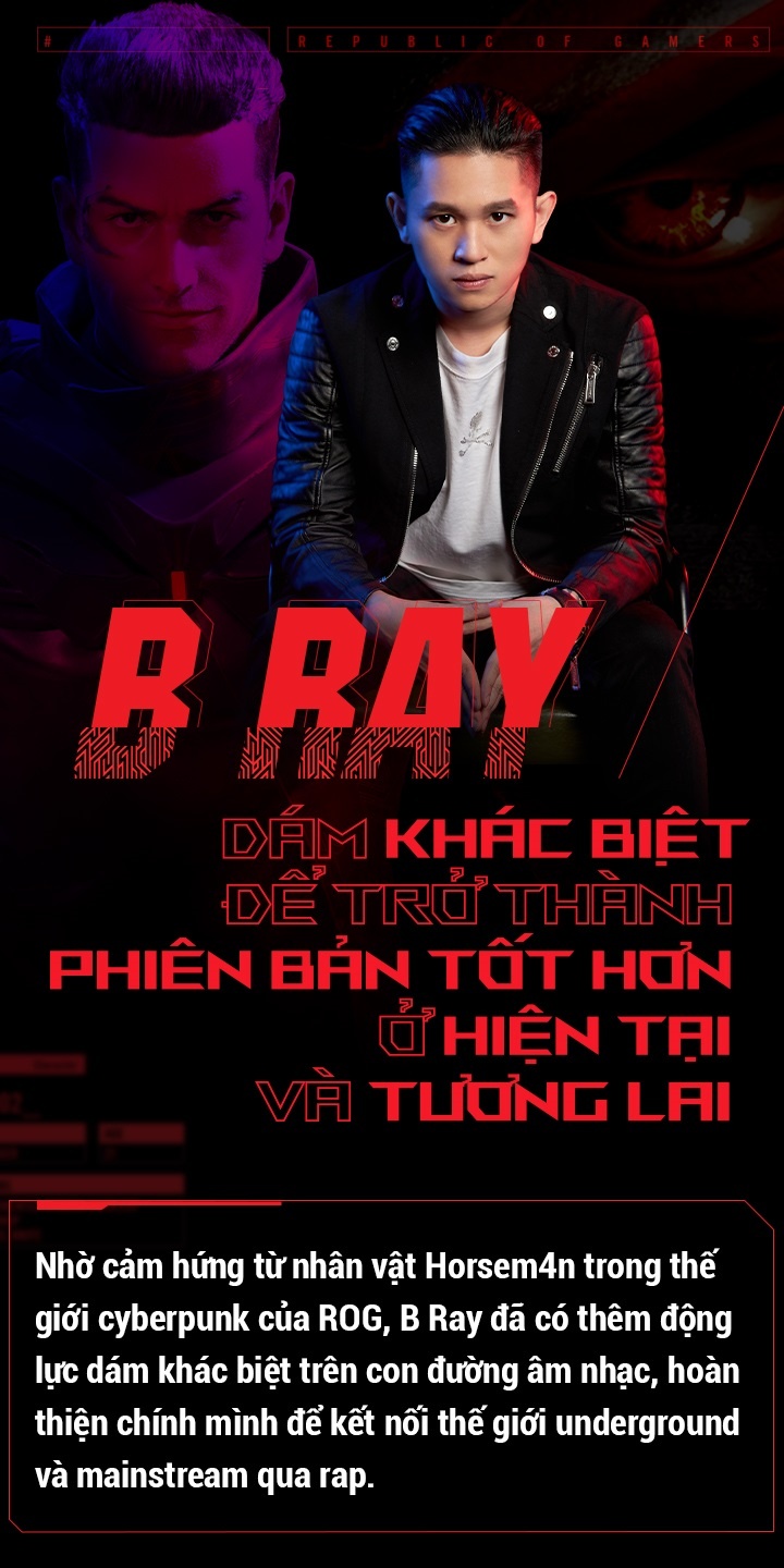 Tự nhận mình có nhiều nét tương đồng với siêu anh hùng Horsem4n trong thế giới cyberpunk (khoa học viễn tưởng) do thương hiệu Republic of Gamers (ROG) của Asus tạo ra, B Ray cho biết anh không ngại vượt qua giới hạn của bản thân để trở nên khác biệt.