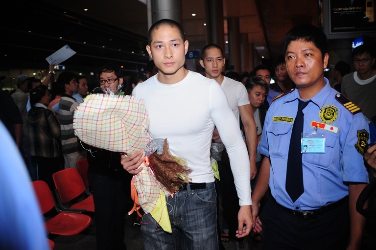 Anh em diễn viên họ Lưu có mặt tại sân bay Tân Sơn Nhất muộn hơn dự kiến gần 2 tiếng đồng hồ vì thời tiết xấu.