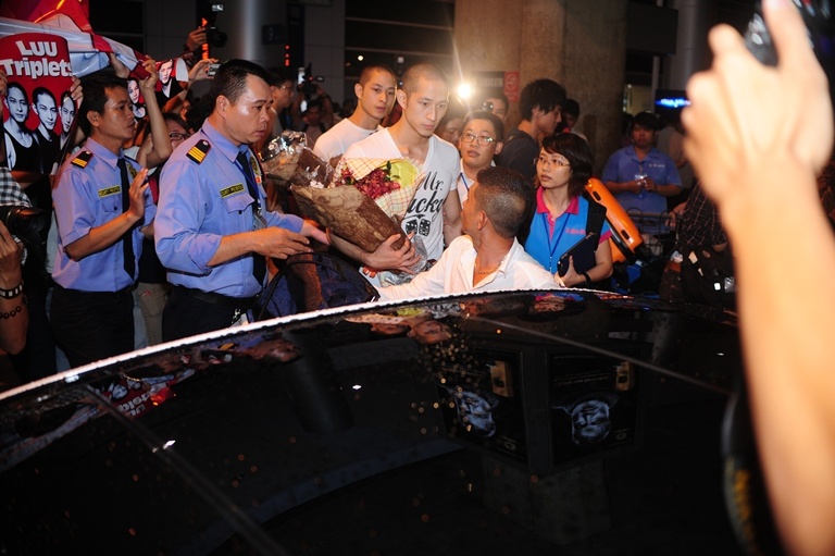Cũng theo tiết lộ từ BTC, anh em sinh ba điển trai sẽ có mặt tại TP.HCM vào lúc 18h. Tuy nhiên, chiều ngày 10/9, Sài Gòn bất ngờ có mưa to. Thậm chí khu vực sân bay Tân Sơn Nhất còn có lúc bị mất điện và phải sử dụng máy phát để duy trì các hoạt động. Gần 20h, anh em nhà họ Lưu mới chính thức xuất hiện. Cánh phóng viên và các gương mặt nổi tiếng giữ nhiệm vụ chào đón bộ ba này như Yến Trang, Diễm My 9X hay Diệu Huyền... phải chờ đợi khá lâu. Tuy nhiên sự thân thiện, cởi mở của anh em nhà họ Lưu khiến mọi người thoải mái hơn nhiều.