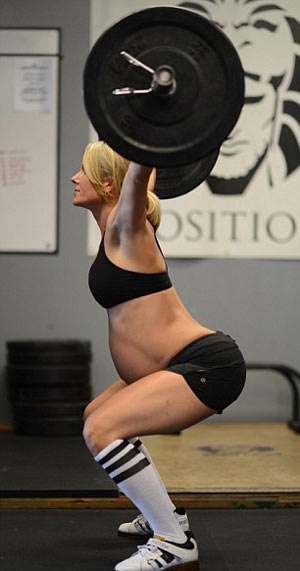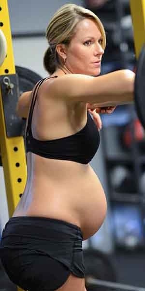 Chỉ còn khoảng 2 tuần nữa sinh nhưng vận động viên 35 tuổi này vẫn nâng nhấc tạ ngon lành.