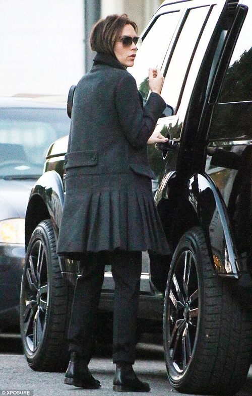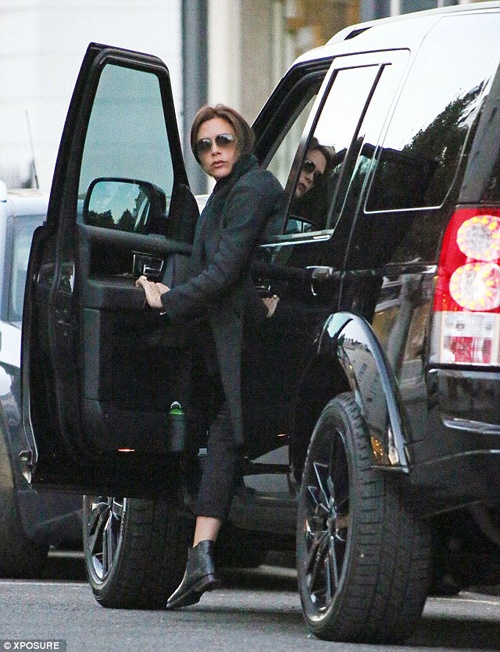 | Bà Becks mặc cả một cây đen theo phong cách Tomboy cá tính và sành điệu ra đường. |