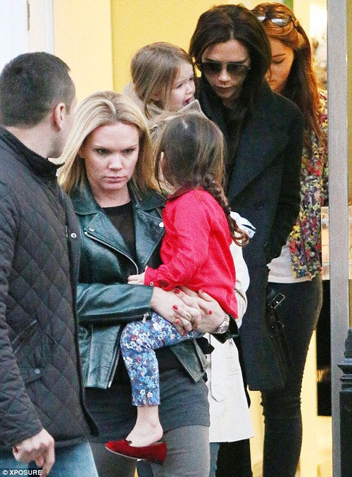 | Đi cùng mẹ con nhà Becks còn có cô em gái Louise của Vic. |