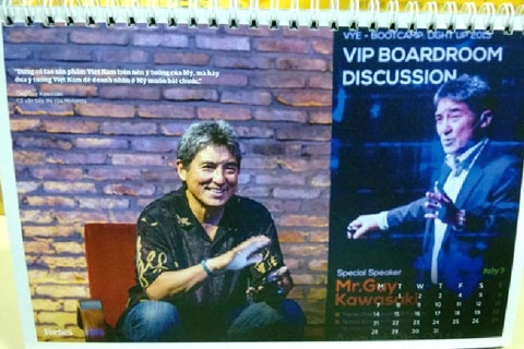 Đáng chú ý, mỗi một tờ lịch tương ứng mỗi tháng của năm, in hình một doanh nhân kèm theo câu nói mang ý nghĩa sâu sắc. 3 doanh nhân của Việt Nam là ông Phạm Nhật Vượng - Chủ tịch Vingroup; ông Văn Đức Mười - Tổng giám đốc công ty Việt Nam Kỹ nghệ Súc sản (Vissan) và ông Vũ Quang Hội - Chủ tịch công ty Bitexco.