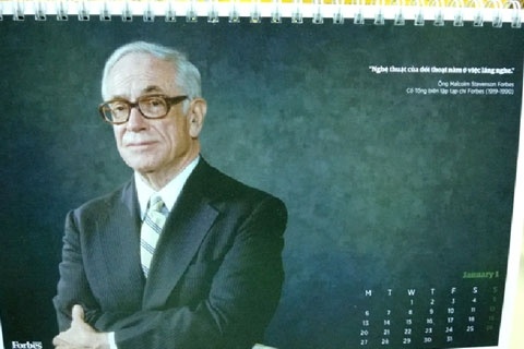 12 nhân vật được Forbes Việt Nam chọn in ảnh trên lịch gồm ông Mancoln Stevenson Forbes, cố Tổng biên tập tạp chí Forbes; CEO HP, bà Meg Whitman; ông Michael Dell, hãng Dell, người giàu thứ 25 nước Mỹ; ông Richard Branson, sáng lập viên, Chủ tịch Tập đoàn Virgin; ông Bill Cosby, nghệ sĩ, nhà sản xuất truyền hình Mỹ…