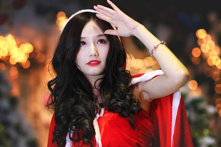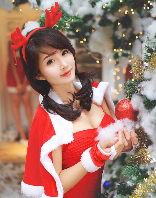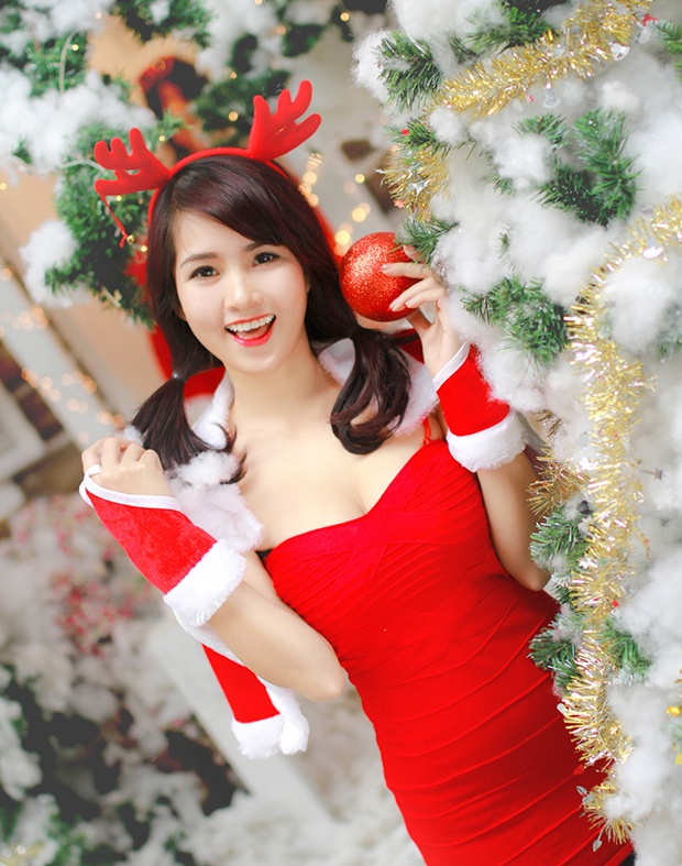 | Nụ cười tươi nổi bật trong trang phục Giáng sinh của Quỳnh Phương. |