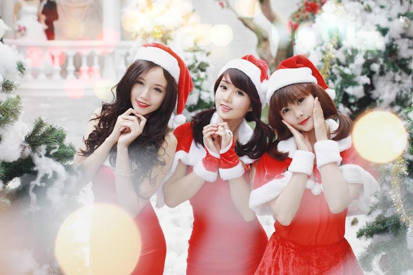 | Khuôn mặt xinh xắn của Kim Ngân và Hà Phương trong sắc đỏ trắng của mùa Giáng sinh. |