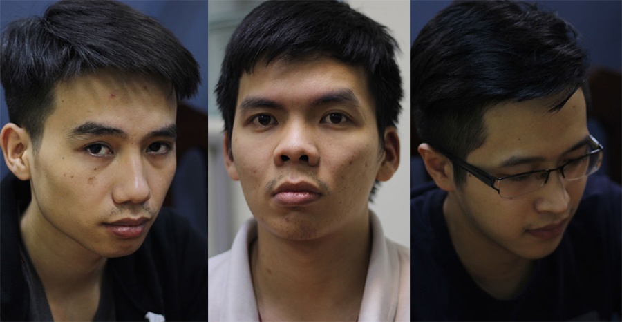 Họ gồm: Lê Văn Nguyễn (nhân viên an ninh mạng), Nguyễn Trọng Hồng (lập trình viên), Đặng Quang Thành Thanh, cùng 25 tuổi, ở quận Cầu Giấy, Hà Nội.