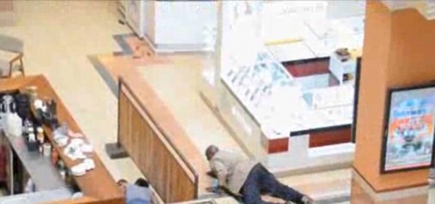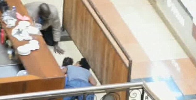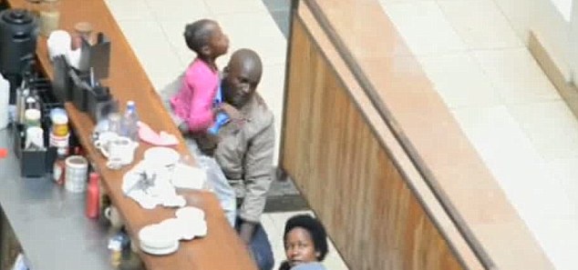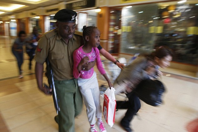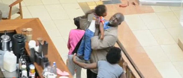 | Nhân viên an ninh mặc thường phục cứu ba mẹ con giả chết trong vụ xả súng ở khu mua sắm Westgate, Nairobi. |