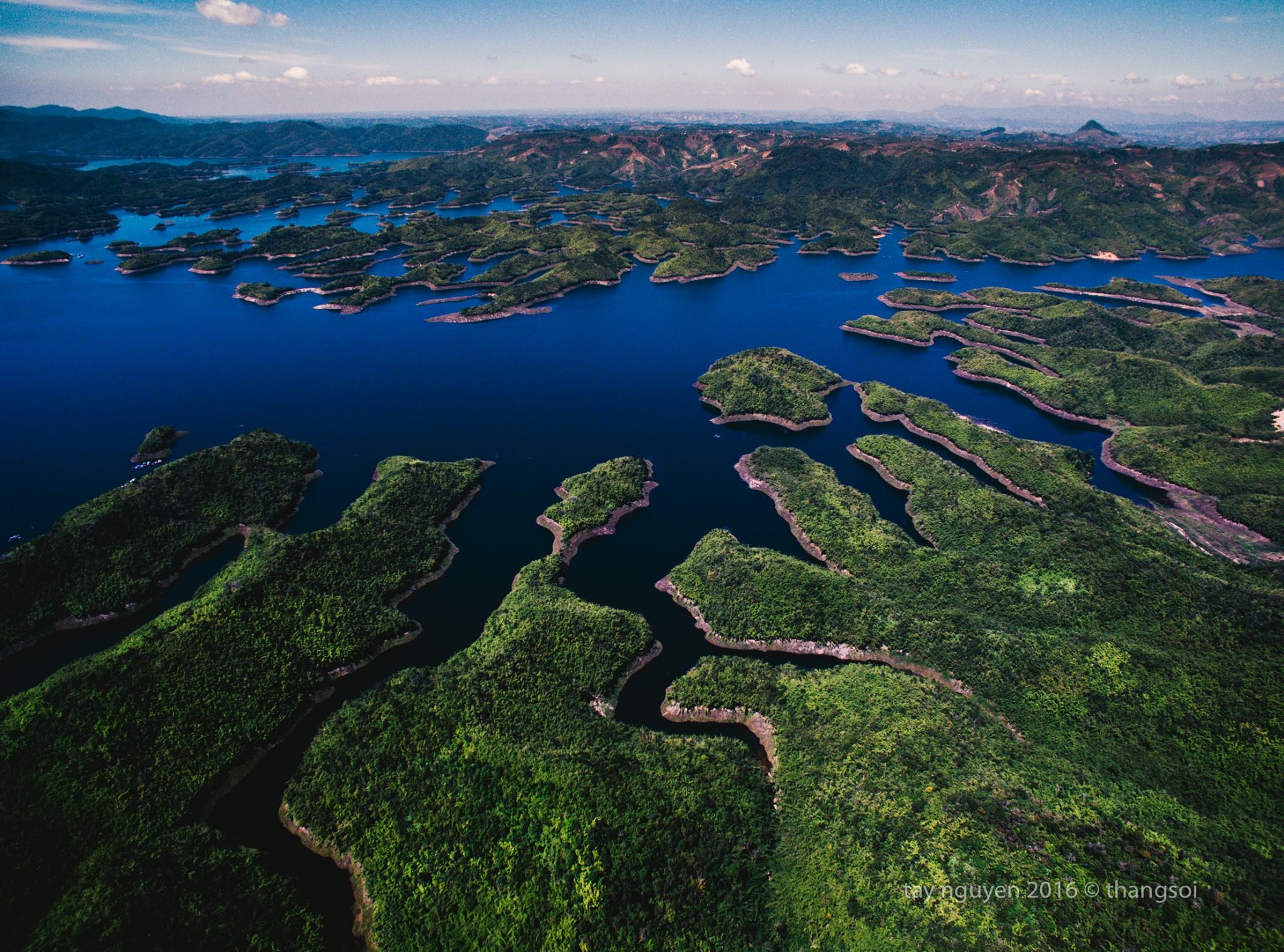 | Hồ Tà Đùng, xã Đắk Som, huyện Đắk G'lon (Đắk Nông). Tà Đùng nằm ở khu vực thượng nguồn của hệ thống sông Đồng Nai, có các dự án thủy điện Đồng Nai 3 và 4 đang hoạt động. Một số đảo ở đây có diện tích khá lớn thuận lợi cho phát triển du lịch sinh thái. Đứng từ trên cao nhìn xuống, mặt nước trong xanh, phẳng lặng của hồ Tà Đùng như được điểm xuyết bởi vô số hòn đảo nhỏ nổi lên.
