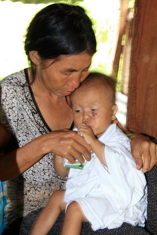 | Chị Pàng và con út Đào Thị Thủy (18 tháng tuổi). |