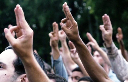 Kiểu chào bằng cách giơ ba ngón tay trong một phim Hollywood trở thành biểu tượng chống đối quân đội của những người biểu tình tại Thái Lan trong những ngày qua.