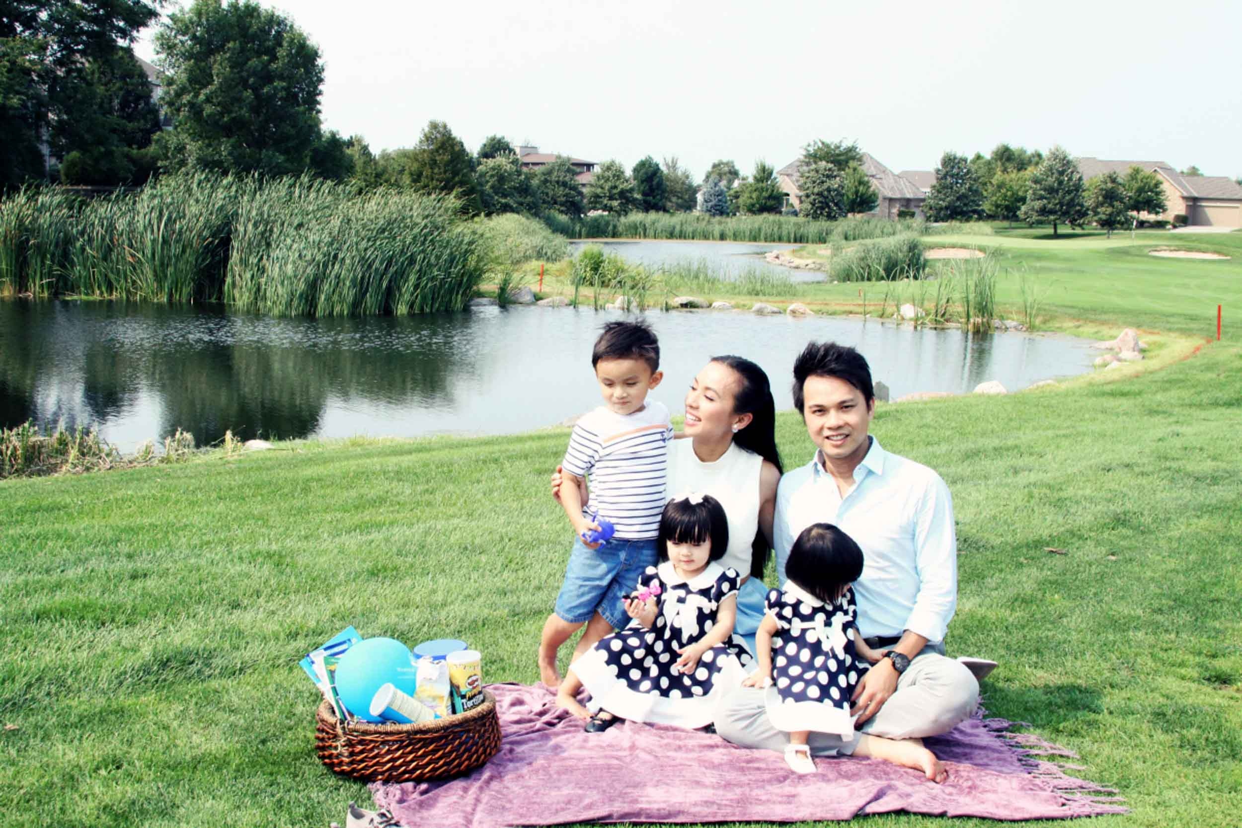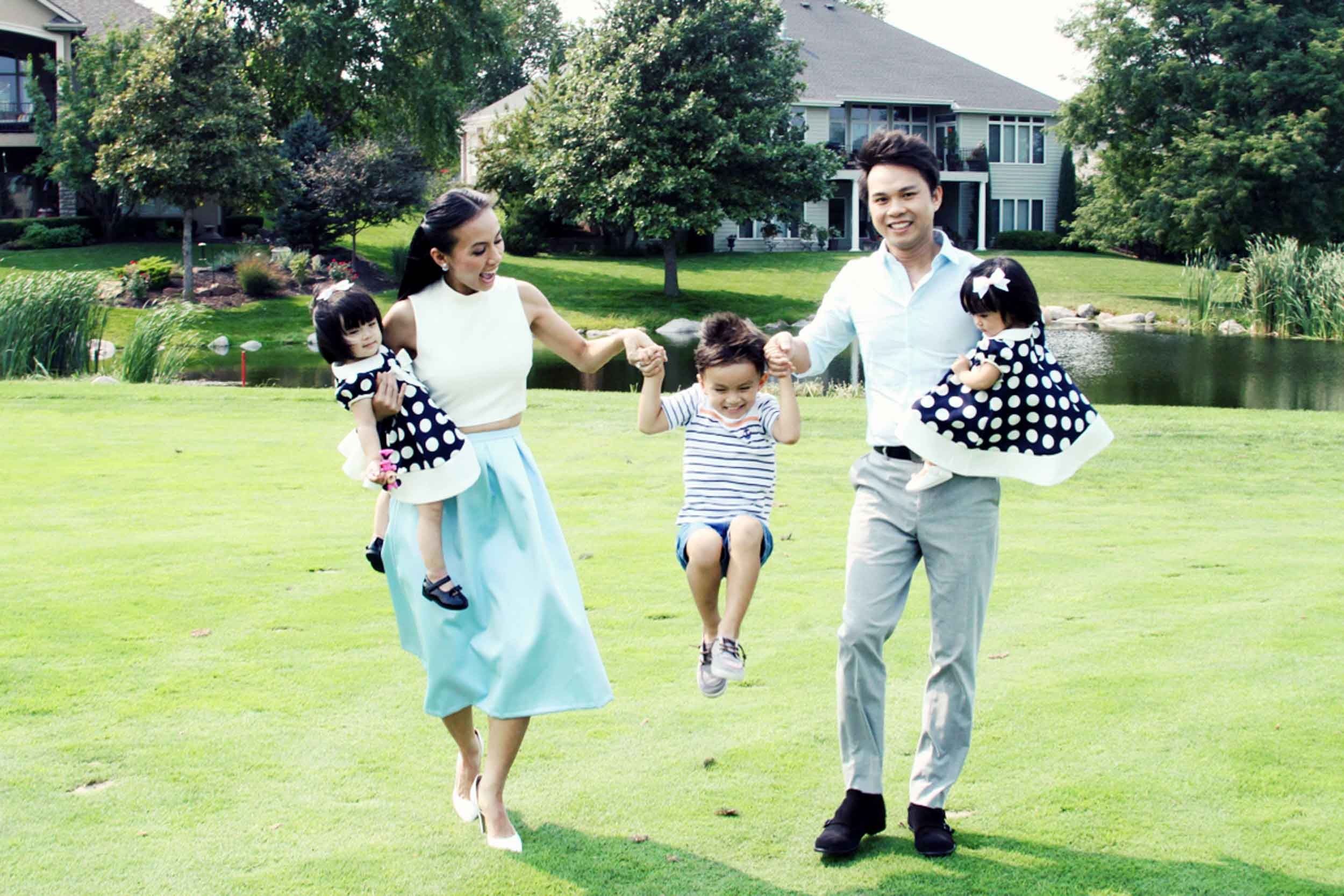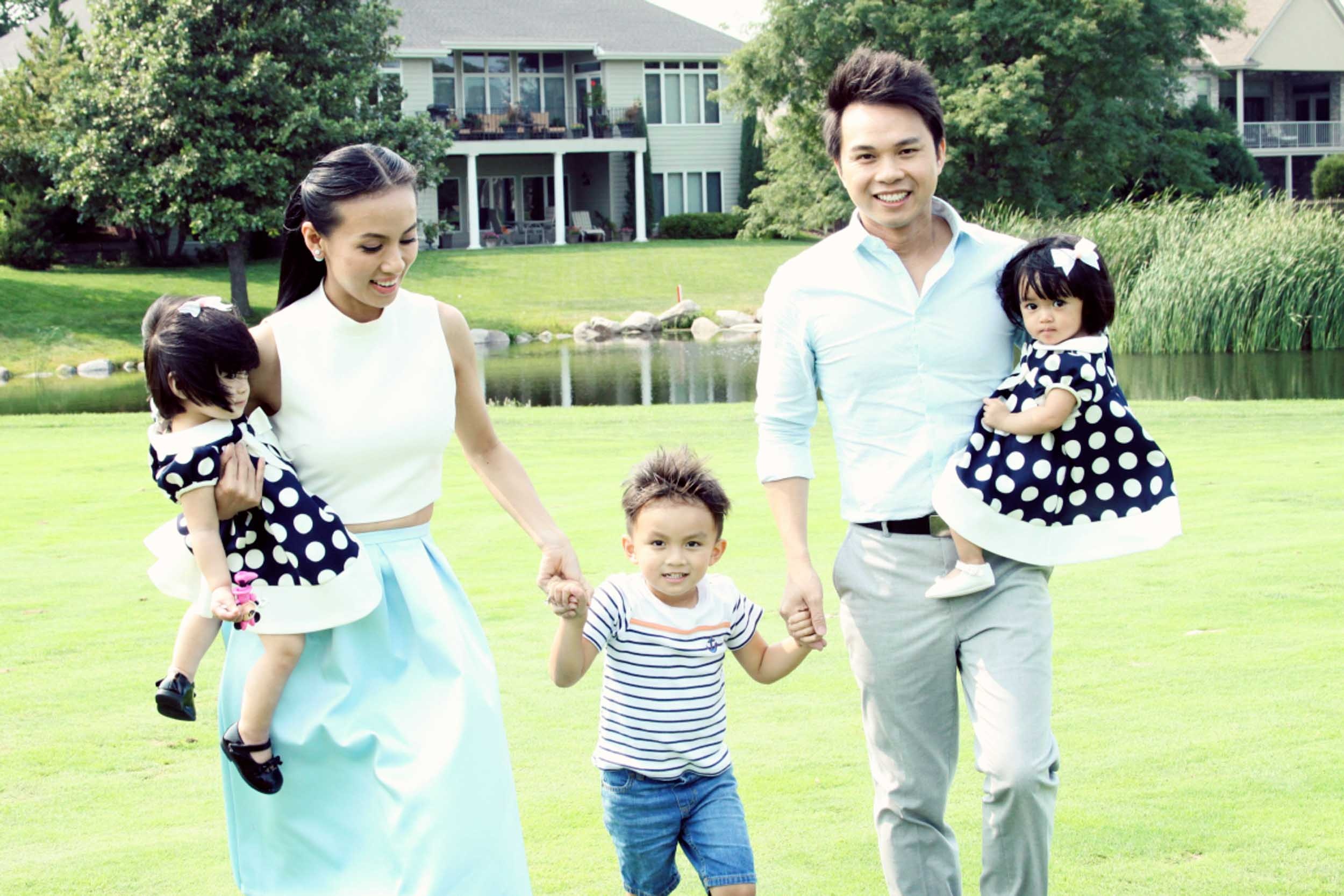 MC hải ngoại đã lập gia đình cách đây 10 năm với mối tình đầu, lên chức mẹ năm 2011 và sinh đôi hai bé gái vào năm 2014.