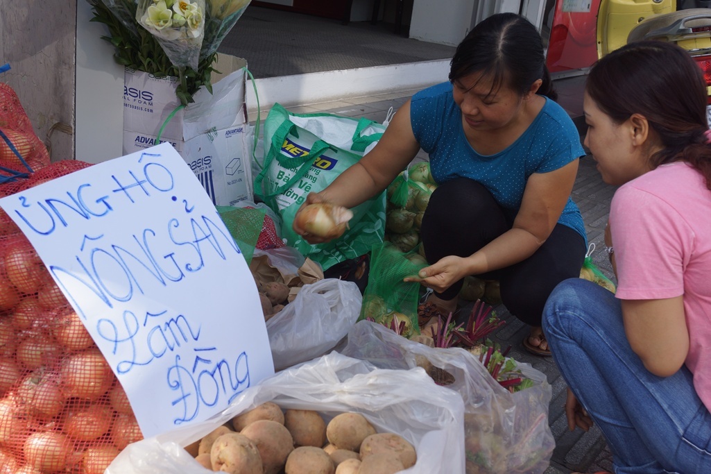 Chị Xuân, nhà ở Gò Vấp cho hay, chị biết chương trình bán nông sản ủng hộ nông dân Lâm Đồng thông qua Facebook. Từ sáng sớm, dù đường từ Gò Vấp về trung tâm thành phố kẹt xe, chị vẫn chở con tới điểm bán sớm để mua mỗi loại vài kg ủng hộ nông dân Lâm Đồng.