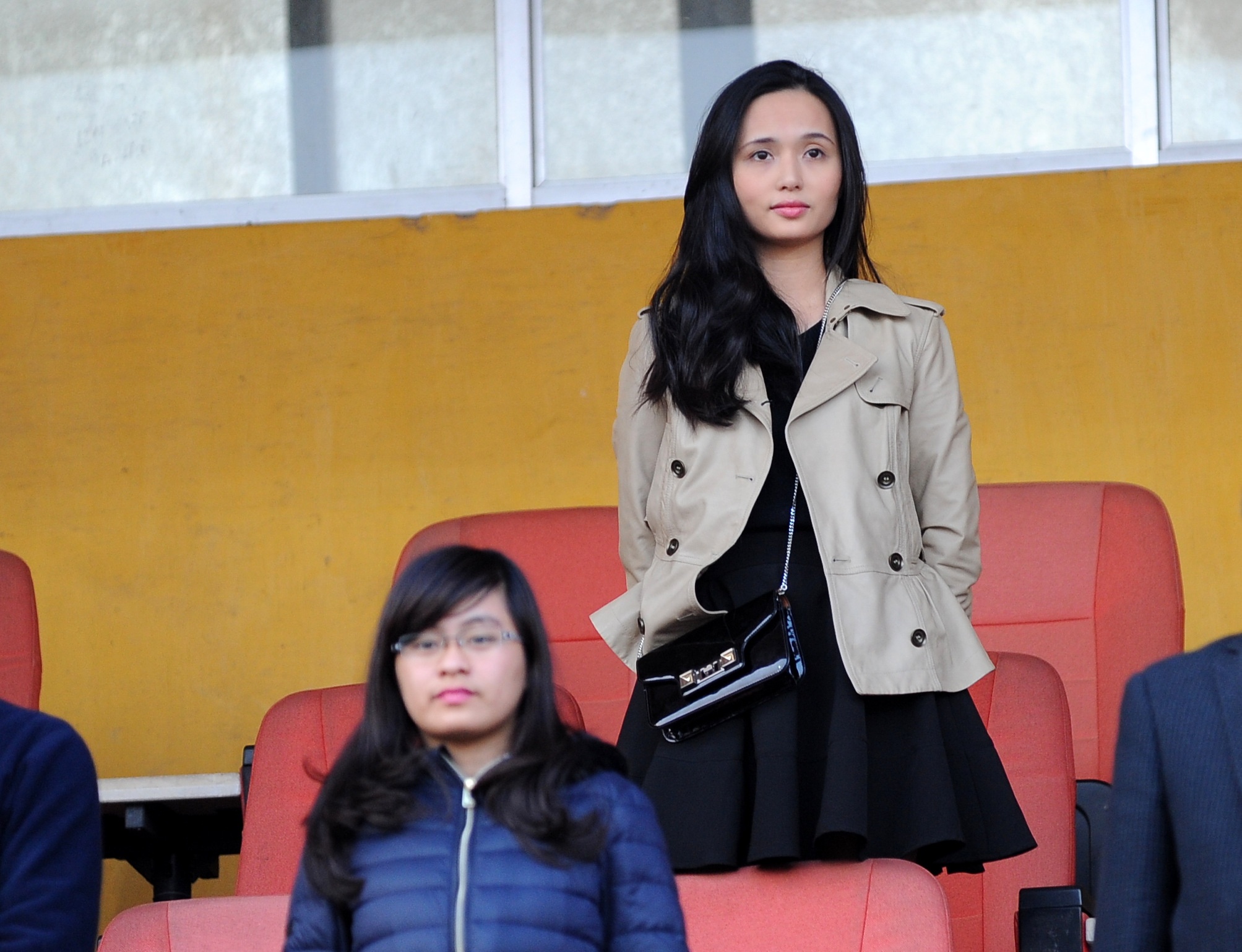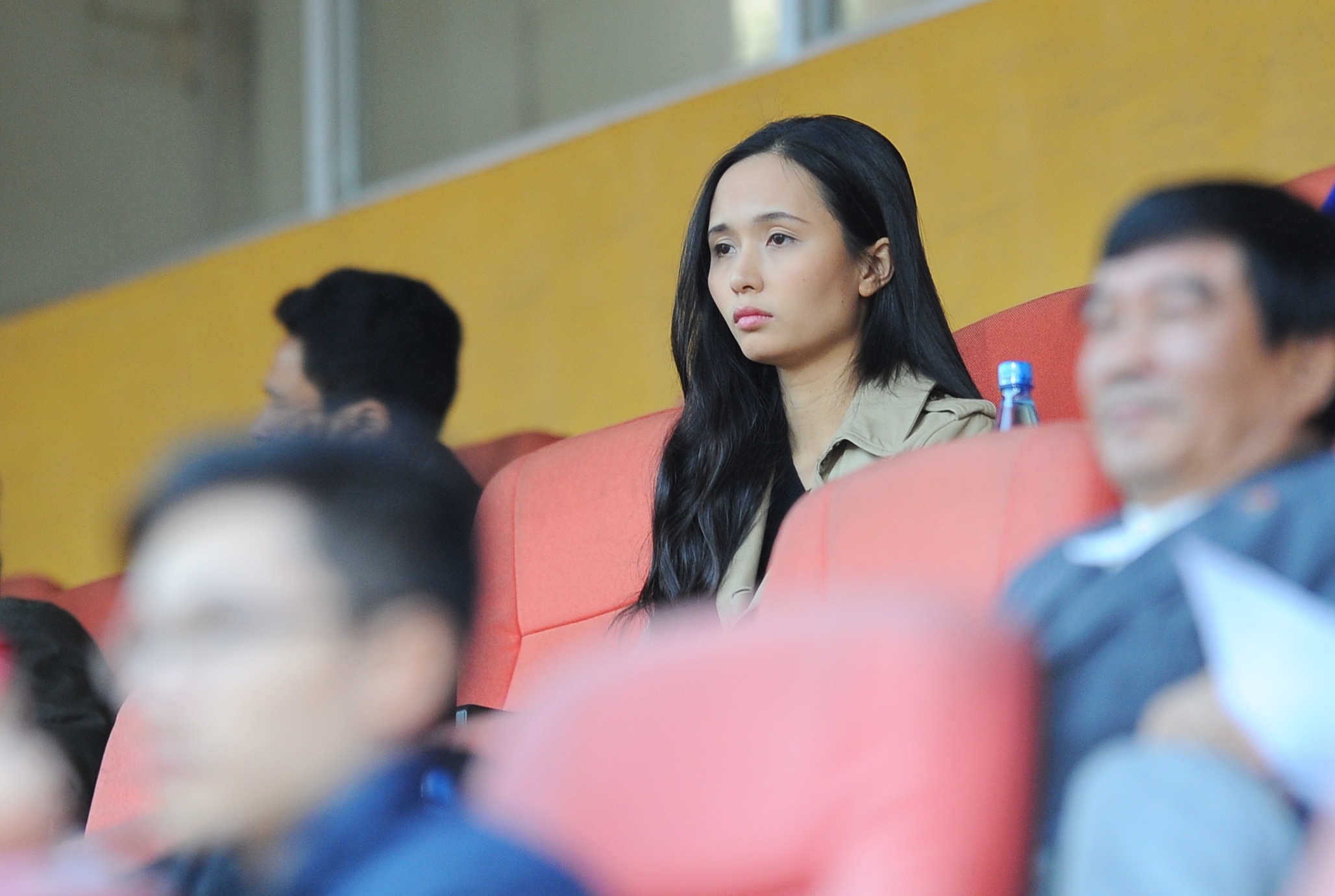 | Bà xã tương lai Huyền Mi của tiền vệ Văn Quyết có mặt trên sân Hàng Đẫy cổ vũ trận đấu giữa Hà Nội T&T gặp QNK Quảng Nam diễn ra lúc 17h chiều nay (17/1). |