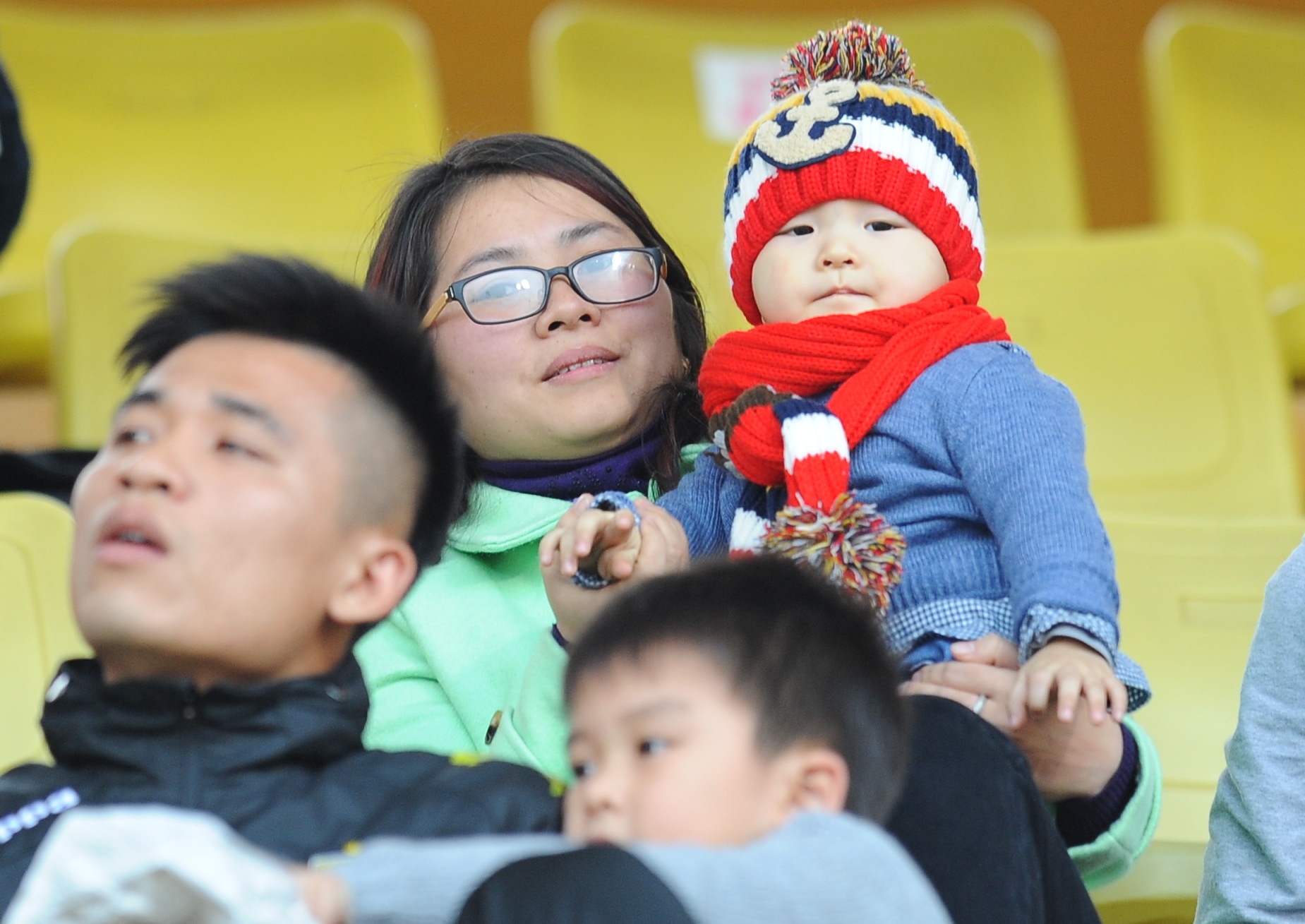 | Bà xã Bích Huệ cùng các 'nhóc tì' của thủ môn Dương Hồng Sơn cũng có mặt trên sân Hàng Đẫy cổ vũ CLB Hà Nội T&T thi đấu trận thứ 2 trên sân nhà. |