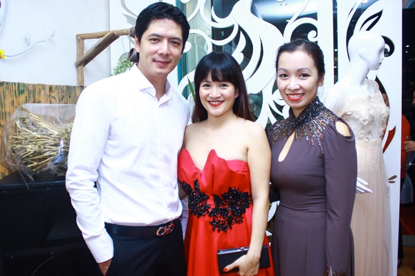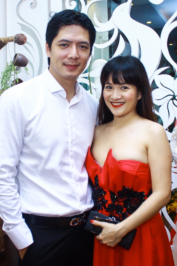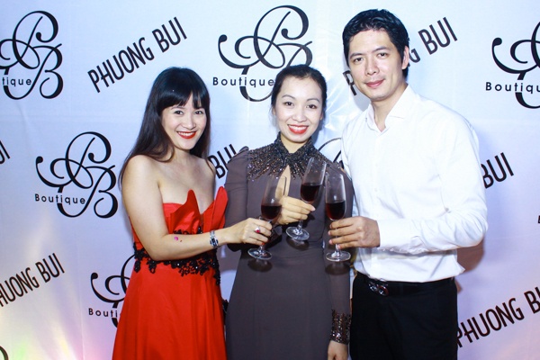 Vợ chồng Bình Minh chúc mừng NTK Phương Bùi.