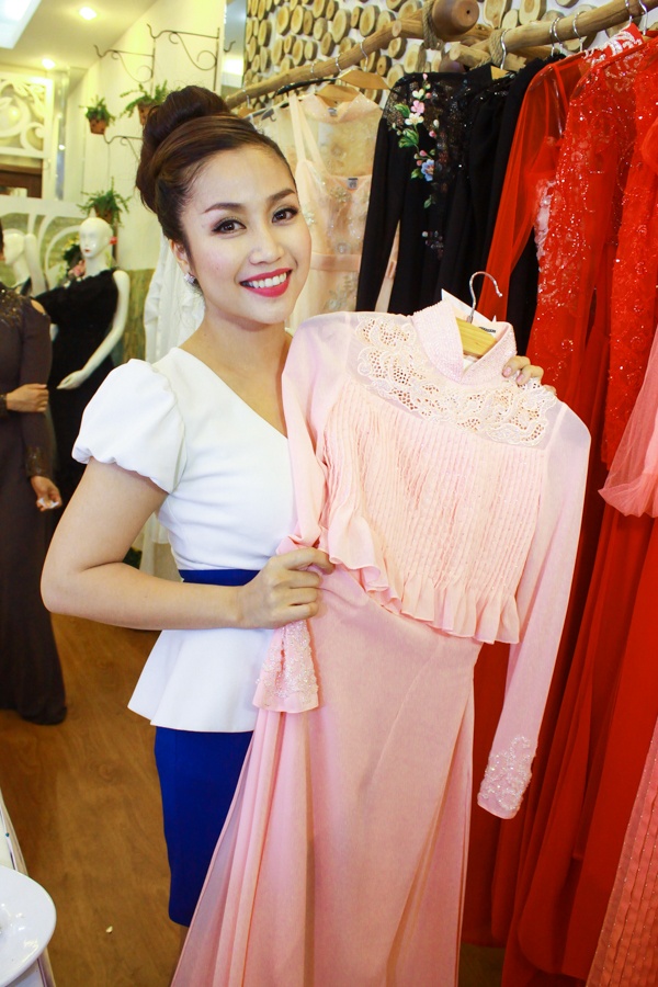 Ốc Thanh Vân hào hứng với những mẫu thiết kế mới được trưng bày trong cửa hàng.