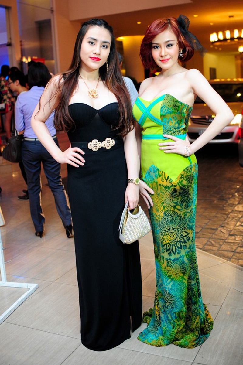 | Chị em Thiều Bảo Trang, Thiều Bảo Trâm mặc trang phục giống nhau đi tiệc. |