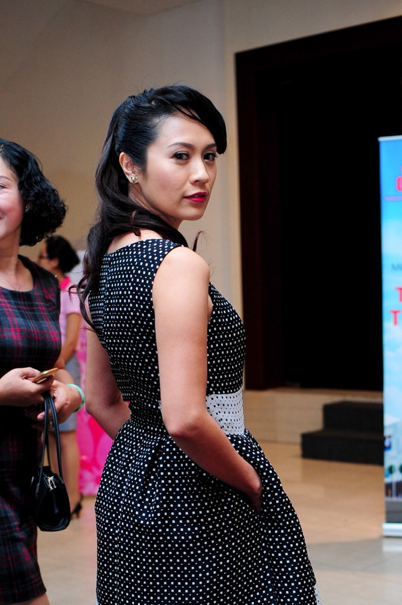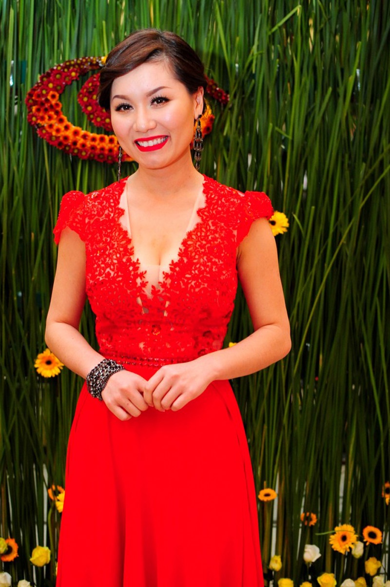 | Bà xã của Đan Trường - nữ doanh nhân Thủy Tiên nổi bật trong chiếc đầm đỏ tại sự kiện. Cô trở về Việt Nam để phụ giúp ông xã chuẩn bị cho liveshow Vẫn mãi một nụ cười diễn ra vào ngày 11/1. |