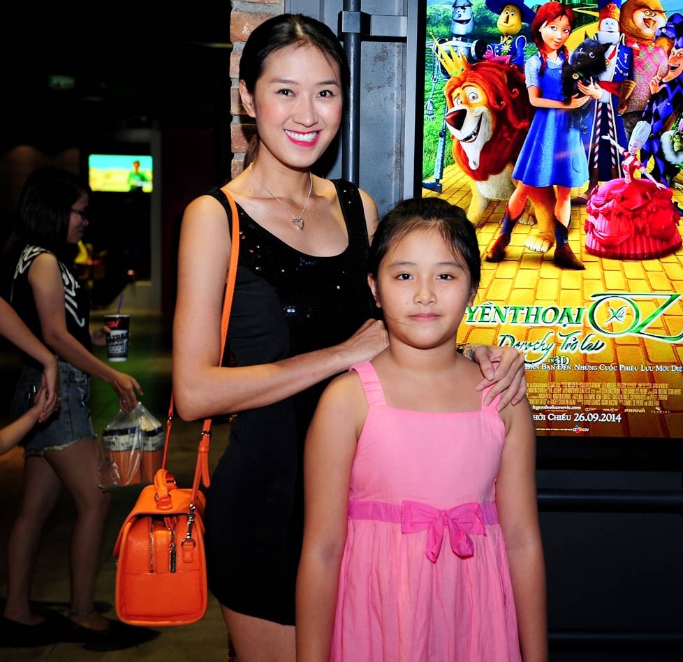 | Người đẹp Quanh Đi cũng đưa cậu con trai đầu lòng đi xem phim. Thời gian này, cô tập trung chăm lo gia đình và không diễn thời trang nhiều như trước. |