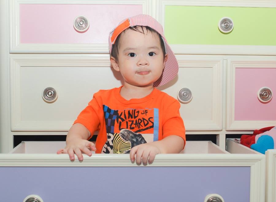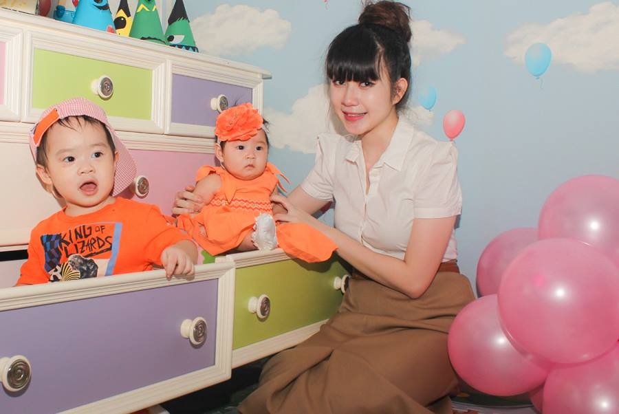Bà xã Lý Hải đặt 2 con vào ngăn tủ chụp hình ngộ nghĩnh