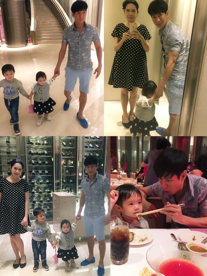 | Vợ chồng Lý Hải - Minh Hà đưa hai con hội ngộ gia đình. |