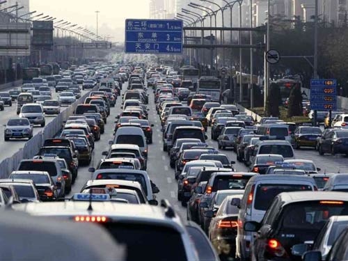 | Cảnh tắc đường trầm trọng trên đường phố Bắc Kinh trong giờ cao điểm. |