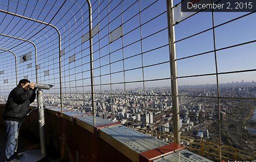 Quang cảnh thủ đô Bắc Kinh nhìn từ tháp Truyền hình và Phát thanh trung ương Trung Quốc biến đổi sau 24 giờ. Tình trạng ô nhiễm nặng ở thủ đô cũng khiến người dân hoài nghi về khả năng của chính phủ trong việc cải thiện chất lượng không khí, theo Bloomberg. Ảnh: Reuters |