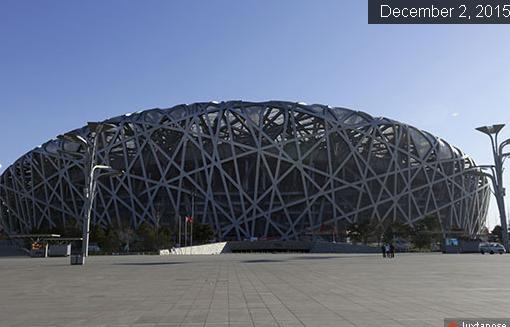 Sân vận động quốc gia (còn gọi là Tổ chim) quang đãng khi nắng lên vào ngày 2/12. Ảnh: Reuters |