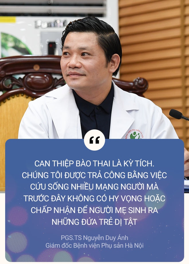 Giám đốc bệnh viện - TTND.PGS.TS Nguyễn Duy Ánh - là người đã mạnh dạn đưa kỹ thuật này về Việt Nam và Bệnh viện Phụ sản Hà Nội là bệnh viện công duy nhất hiện nay dám mổ cứu thai nhi từ trong bụng mẹ.