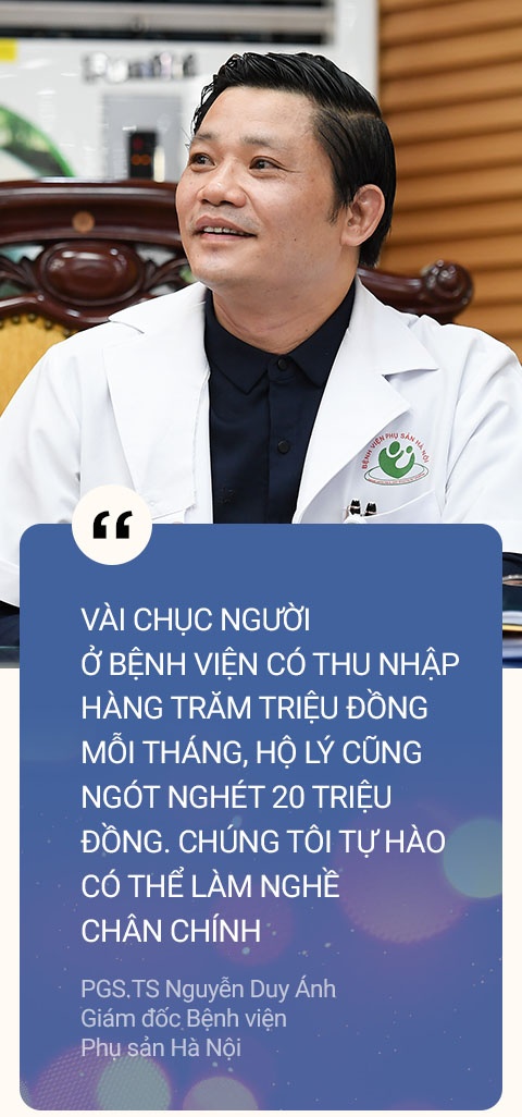 - Có thể nói lương của nhân viên ở viện chúng tôi đảm bảo và cao so với mặt bằng chung. Chúng tôi có những hồ sơ là cá nhân xuất sắc nhưng lương thấp nên muốn xin sang đây. Nhìn vào đó mới thấy đời sống của nhân viên Bệnh viện Phụ sản Hà Nội là ổn định. Chúng tôi tự hào có thể làm nghề chân chính. Còn con số thu nhập hàng trăm triệu đồng mỗi tháng thì thực tế cũng có.