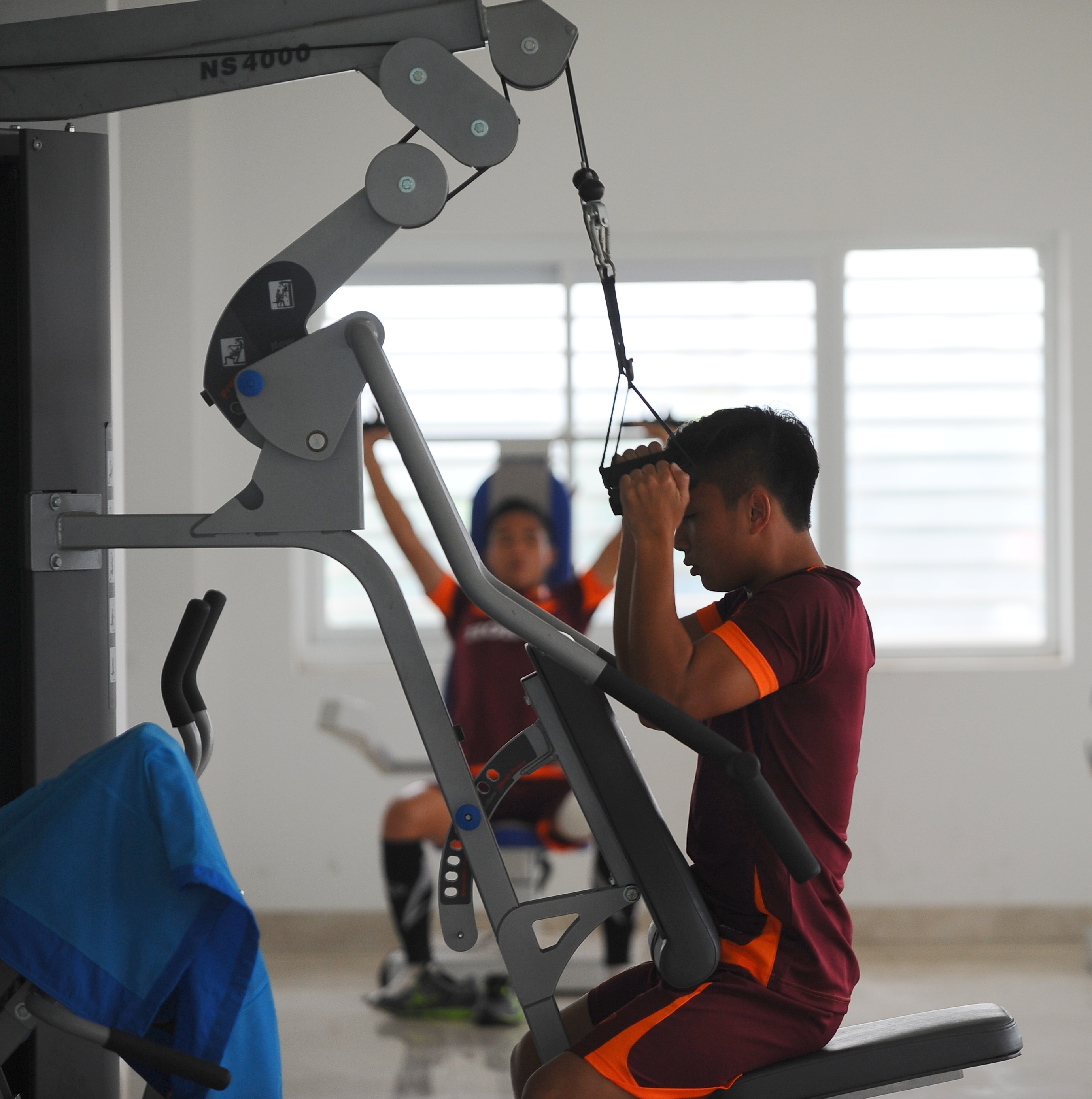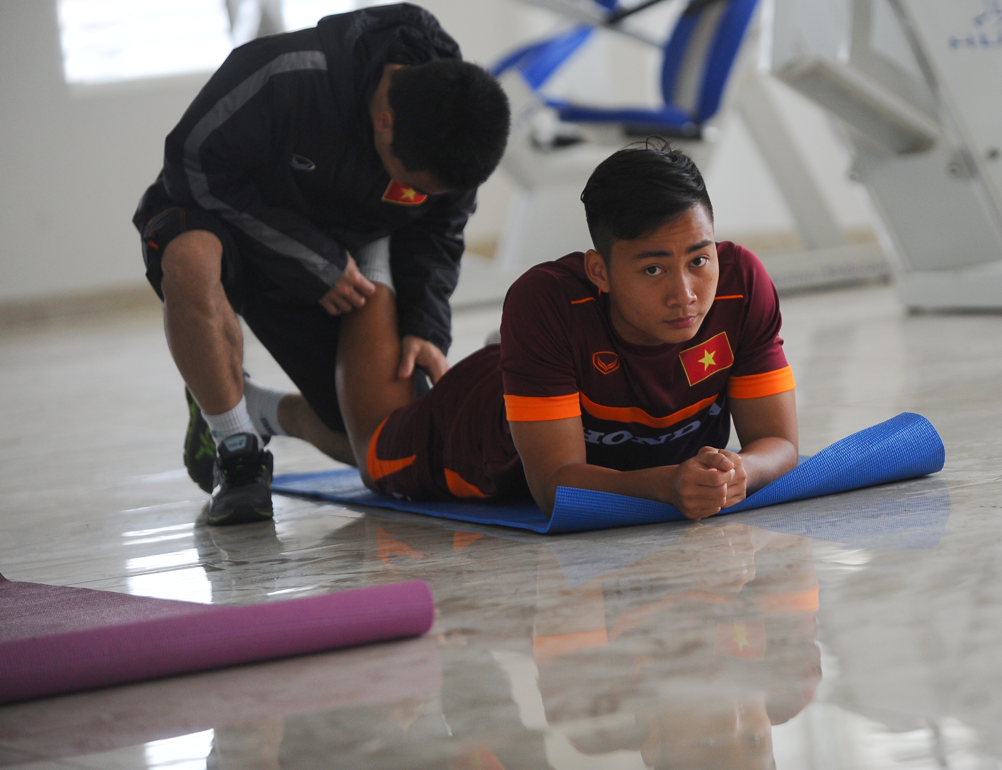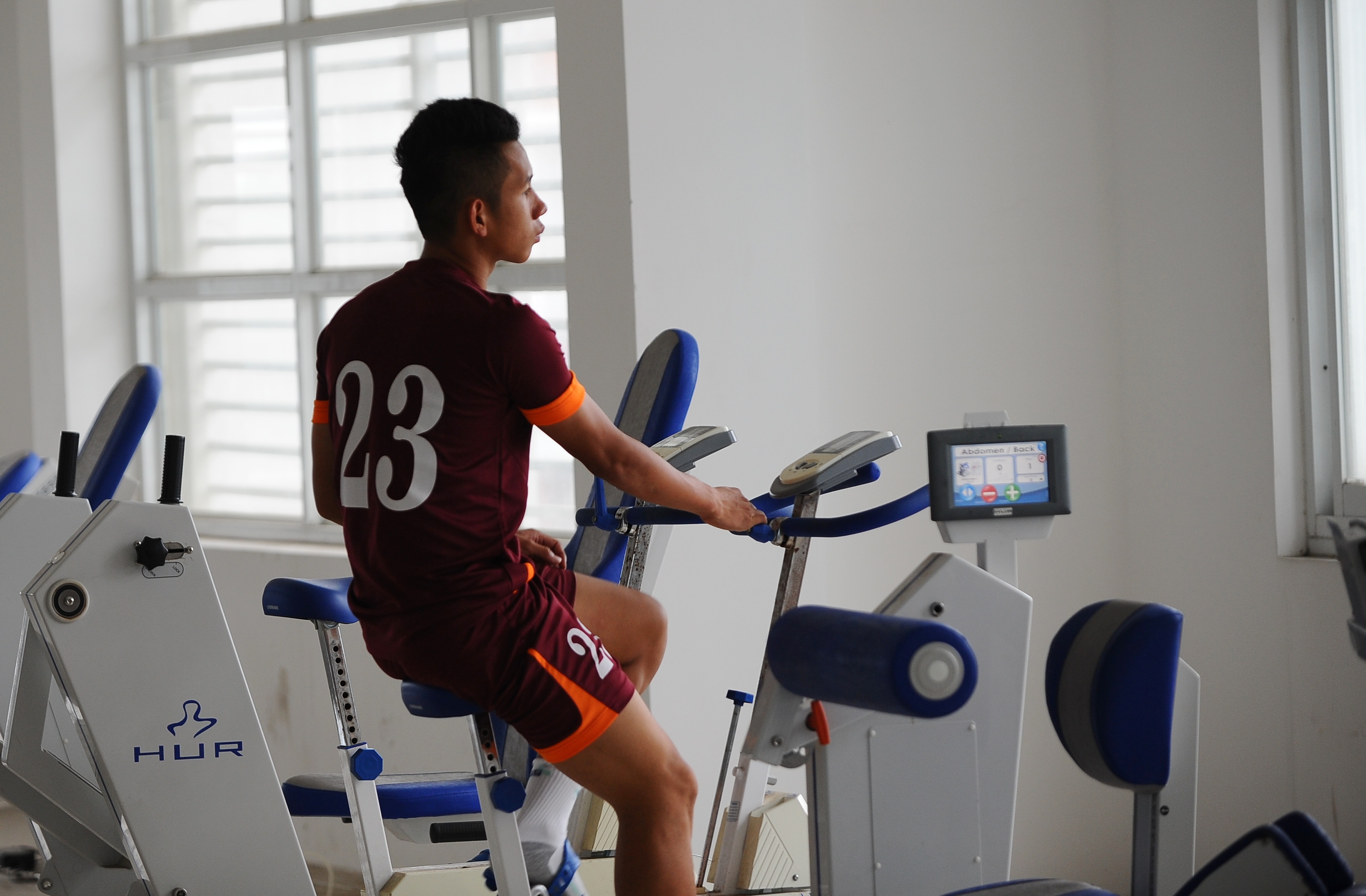 | Sáng 6/3, các cầu thủ Olympic Việt Nam chấn thương không được nghỉ. Bác sĩ trị liệu Shinichi yêu cầu họ tập gym trong Trung tâm đào tạo trẻ VFF để rèn thể lực kết hợp vật lý trị liệu. |