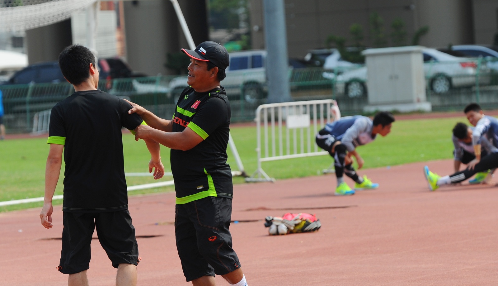 | Sáng 22/3, HLV Miura vẫn yêu cầu các học trò ra sân phụ Rajamangala để tập nhẹ chuẩn bị cho trận đấu gặp Olympic Thái Lan diễn ra lúc 18h tối nay. |
