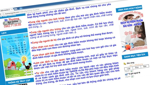 Theo tìm hiểu của chúng tôi, ông Thưởng tên thật là Tưởng Đình Thương (34 tuổi, quê Nghệ An) vốn là “cò” buôn bán tinh trùng. Hơn một năm nay, do nắm bắt nhu cầu cần con của những cặp vợ chồng hiếm muộn, ông Thưởng đã lập website kinh doanh các dịch vụ như đẻ thuê, mang thai hộ, buôn bán trứng phụ nữ, tinh trùng. Ông này huỵch toẹt: “Mình hoạt động ngầm là chính. Cần thiết tôi sẽ đóng dấu vân tay khi làm hợp đồng. Đẻ xong là đường ai nấy đi. Như vậy là chị có đứa con chính chủ rồi”.