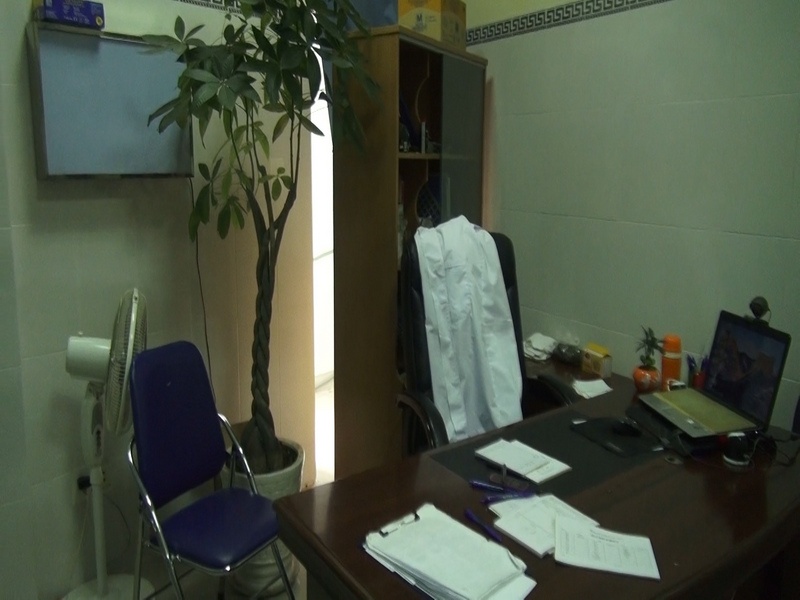 | Bác sĩ phòng khám cởi áo vắt lên ghế rồi trốn cơ quan chức năng bằng cửa sau. |