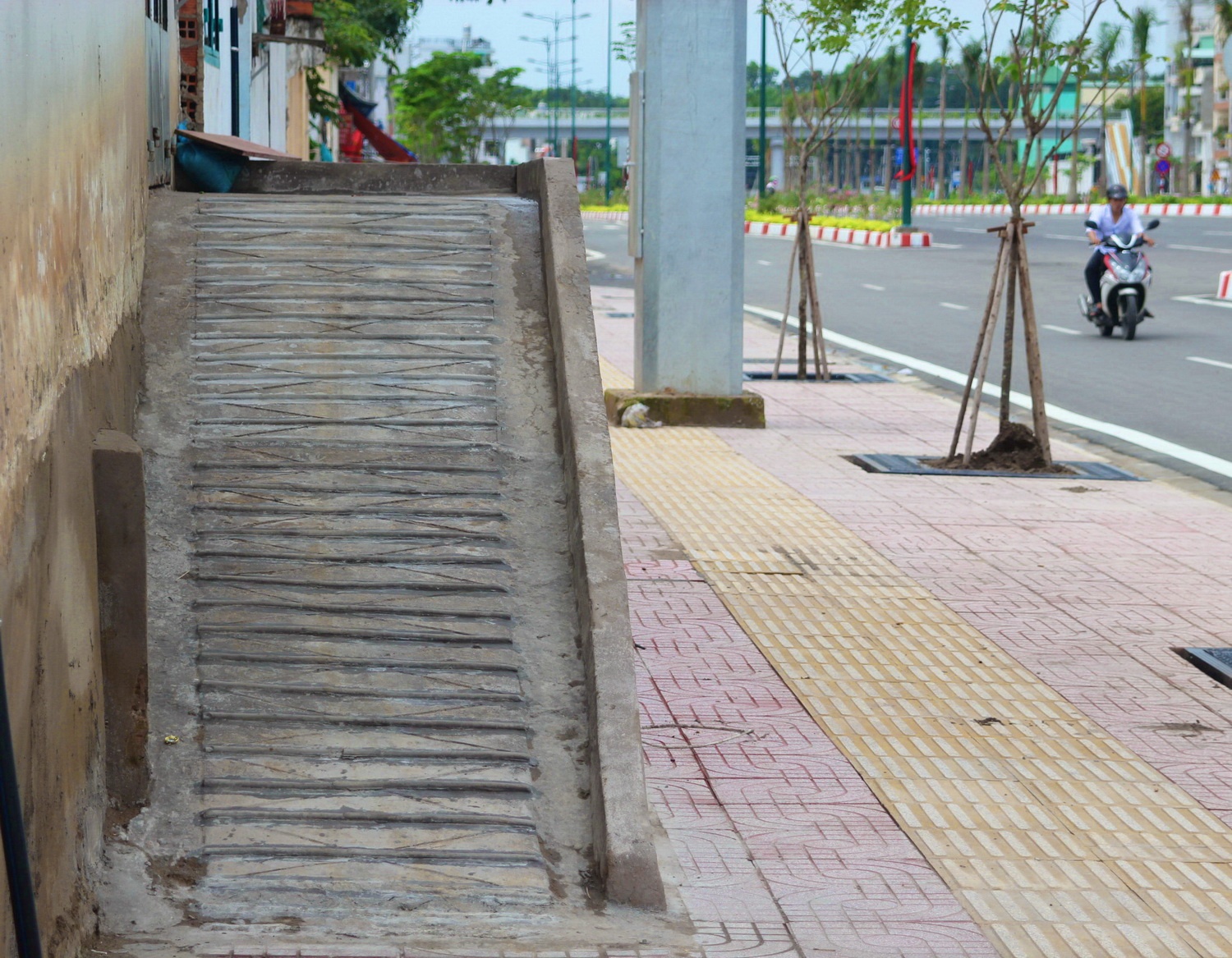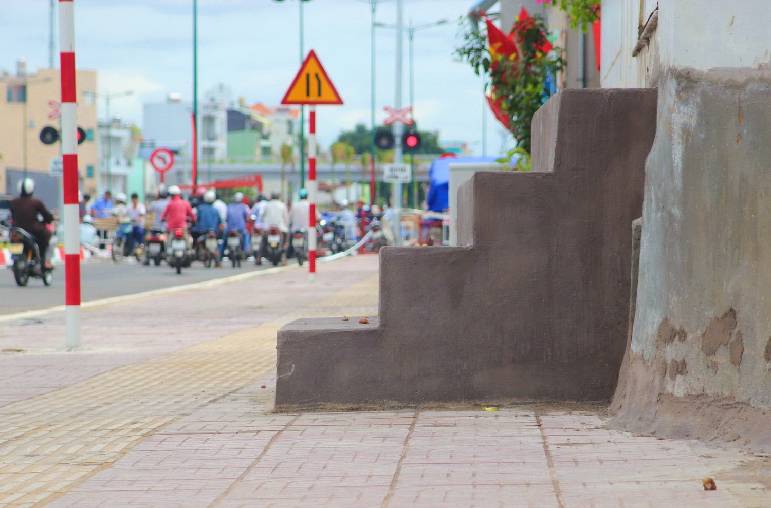 Những ụ cầu thang nằm bên vỉa hè như thế này trông rất... vô duyên.