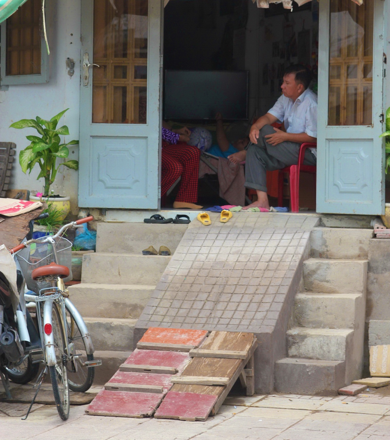 Nhà anh Nguyễn Tiến Hòa tại 126 Lê Lợi (cũ), cao hơn mặt đường 1,3m, gia đình có người già nên lên xuống rất bất tiện.