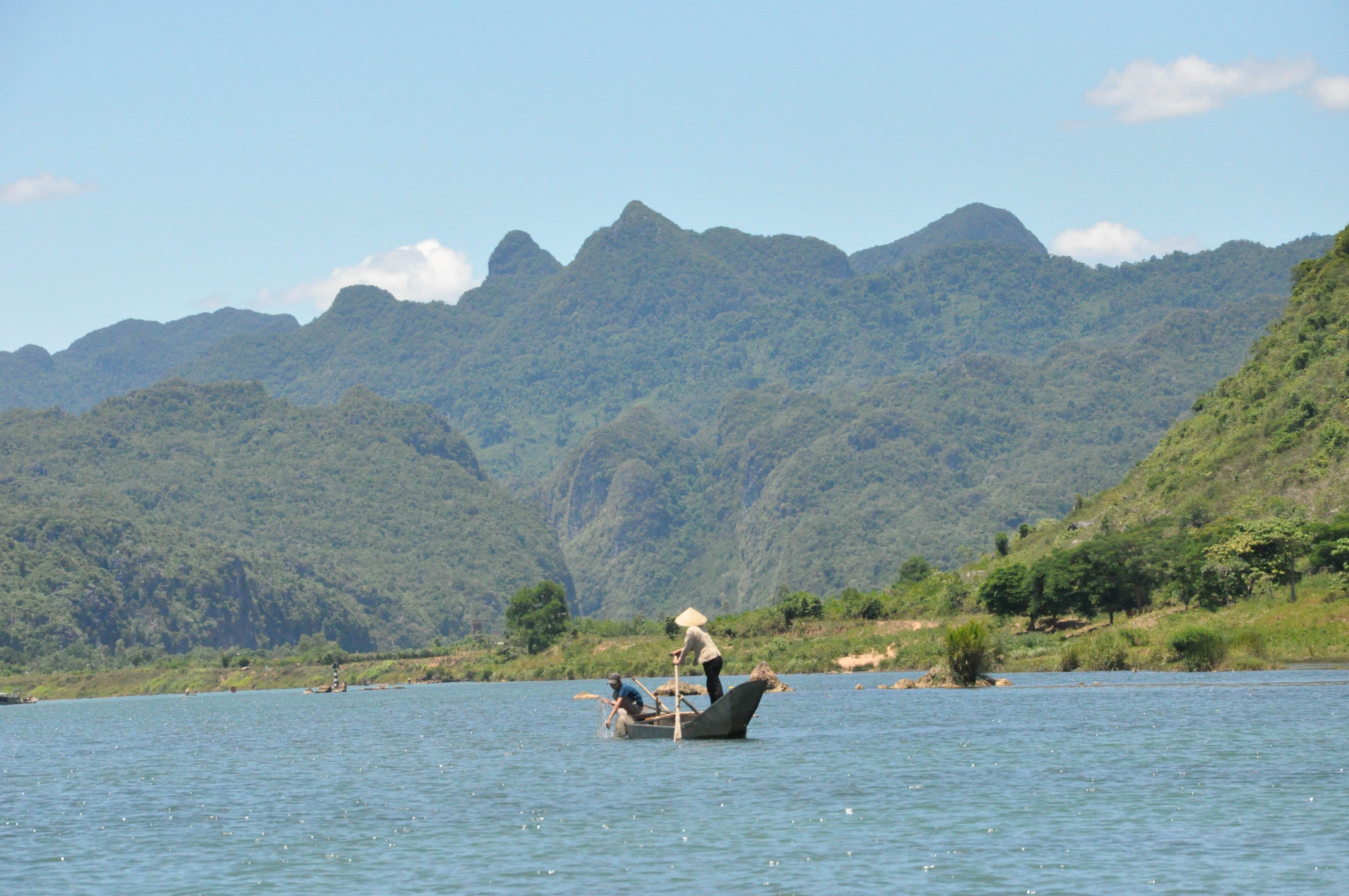 Mua vé du ngoạn thuyền chèo vào động Phong Nha, tôi ngỡ ngàng trước vẻ đẹp nức lòng của nơi đây. Dòng sông tĩnh lặng chảy lặng lẽ theo chân núi, nước trong xanh như ngọc bích đến độ tôi có thể nhìn thấy rong mọc dưới đáy sông. Xuôi dòng con nước, tôi tự nhủ phải chăng mình đang lạc vào một bức tranh được tô điểm bằng chất liệu hoàn toàn thiên nhiên, xa xa người đứa trẻ chăn trâu, những người nông dân vớt rong… vẫy tay chào thân nhiên như một cách để thể hiện sự nồng nhiệt và tự hào về quê hương. Động Phong Nha hiện ra sừng sững bằng cửa động lớn đến ấn tượng, tạo hóa vẽ nên những đường cong cho hang đẹp như người phụ nữ tuổi thanh xuân đầy sức sống, có nơi tôi hình dung mình đang ở trong bụng một con quái vật bởi những hình thú kì quái. Gọi là “bách động danh lam” quả không sai, vì những hang động khác như Động Tiên Sơn, Động Thiên Đường, Động Sơn Đoòng, Hang Én, Hang Tối… tạo nên một quần thể các hang động kỳ vỹ. Mỗi hang động là mỗi ấn tượng, mỗi cảm nhận và vẻ đẹp khác nhau, như luồng cảm xúc được dẫn dắt có mục đích của mẹ thiên nhiên.