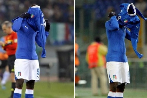 Hình ảnh ăn mừng sau khi ghi bàn vào lưới tuyển Đức của Balotelli cũng là một hành động khiến người hâm mộ khó quên.