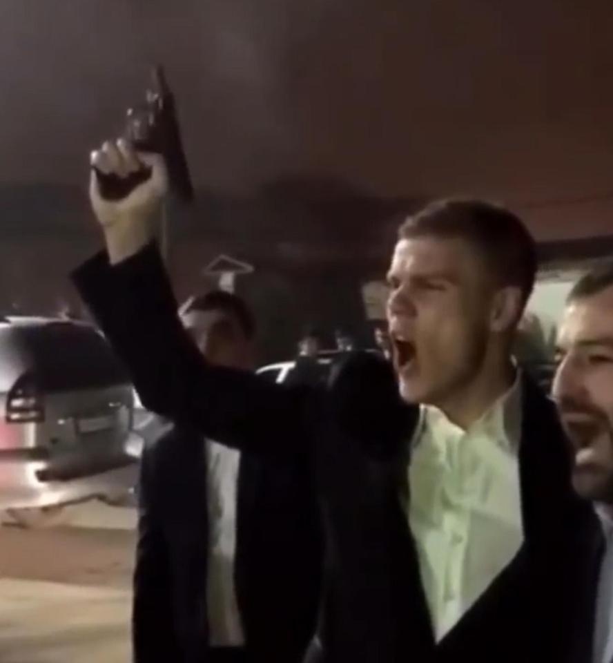 Kokorin, trong bộ vest đen và áo sơ mi trắng, giơ súng lên trời và nói: "Chochiyev, chúc mừng đám cưới". Hành vi bắn chỉ thiên bị cấm ở nhiều nơi. Bởi khi bắn lên trời, viên đạn có thể rơi xuống với tốc độ 640 km/h, đe dọa gây thương tích hoặc thậm chí cướp tính mạng những người xung quanh.