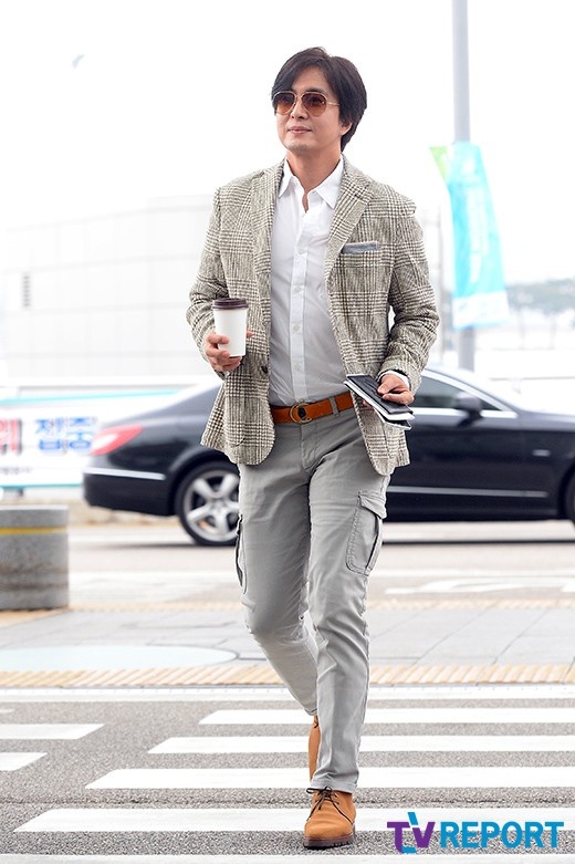 | Sáng 30/9, Bae Yong Joon bị bắt gặp ở sân bay Incheon chuẩn bị cho chuyến đi sang Nhật. |