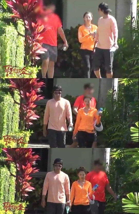 Tài tử Mối tình đầu diện áo thun trắng, quần denim, đội mũ fedora thời thượng. Mặc dù trang phục khá trẻ trung nhưng dễ nhận ra Bae Yong Joon lộ dấu vết tuổi tác qua cân nặng tăng lên trông thấy. Trong khi đó, nữ diễn viên Park Soo Jin đi bằng cửa khác.