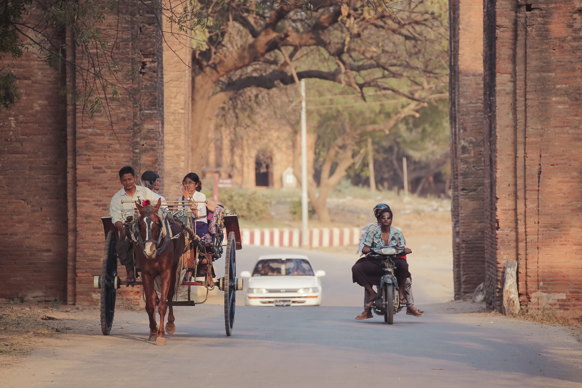 Từ xa tới, bạn có thể trải nghiệm Bagan bằng rất nhiều phương tiện, từ truyền thống cho đến hiện đại như xe bò, xe ngựa, xe đạp, ô tô, xe đạp điện...
