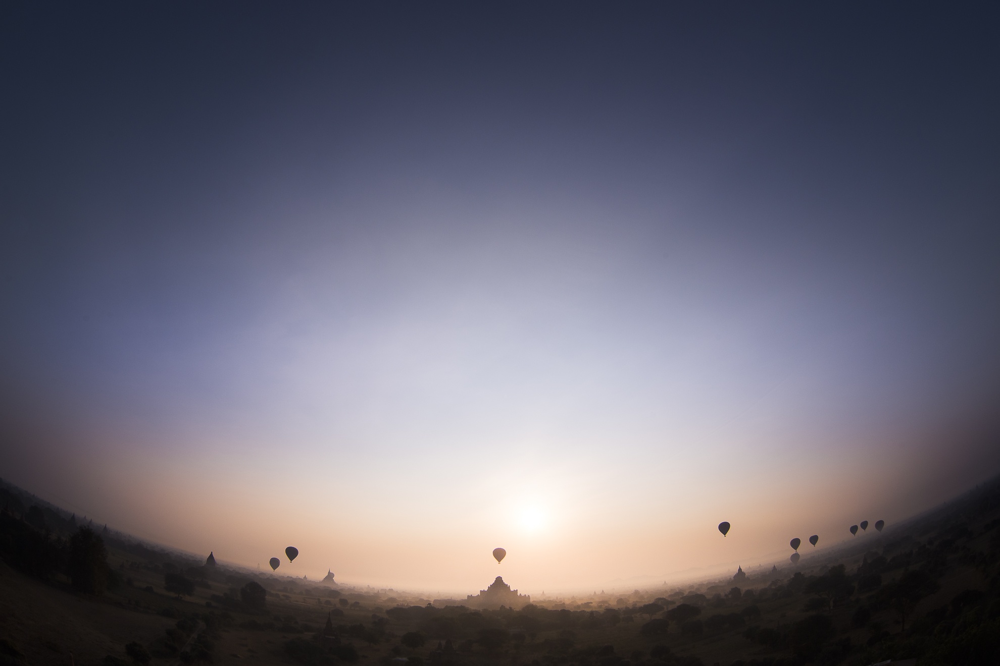 Lượn khinh khí cầu vào lúc bình minh hoặc hoàng hôn du khách có thể ngắm nhìn vùng đất Bagan trong trẻo và tưởng tượng mình như đang bay trên tấm thảm đến một xứ sở thần tiên.