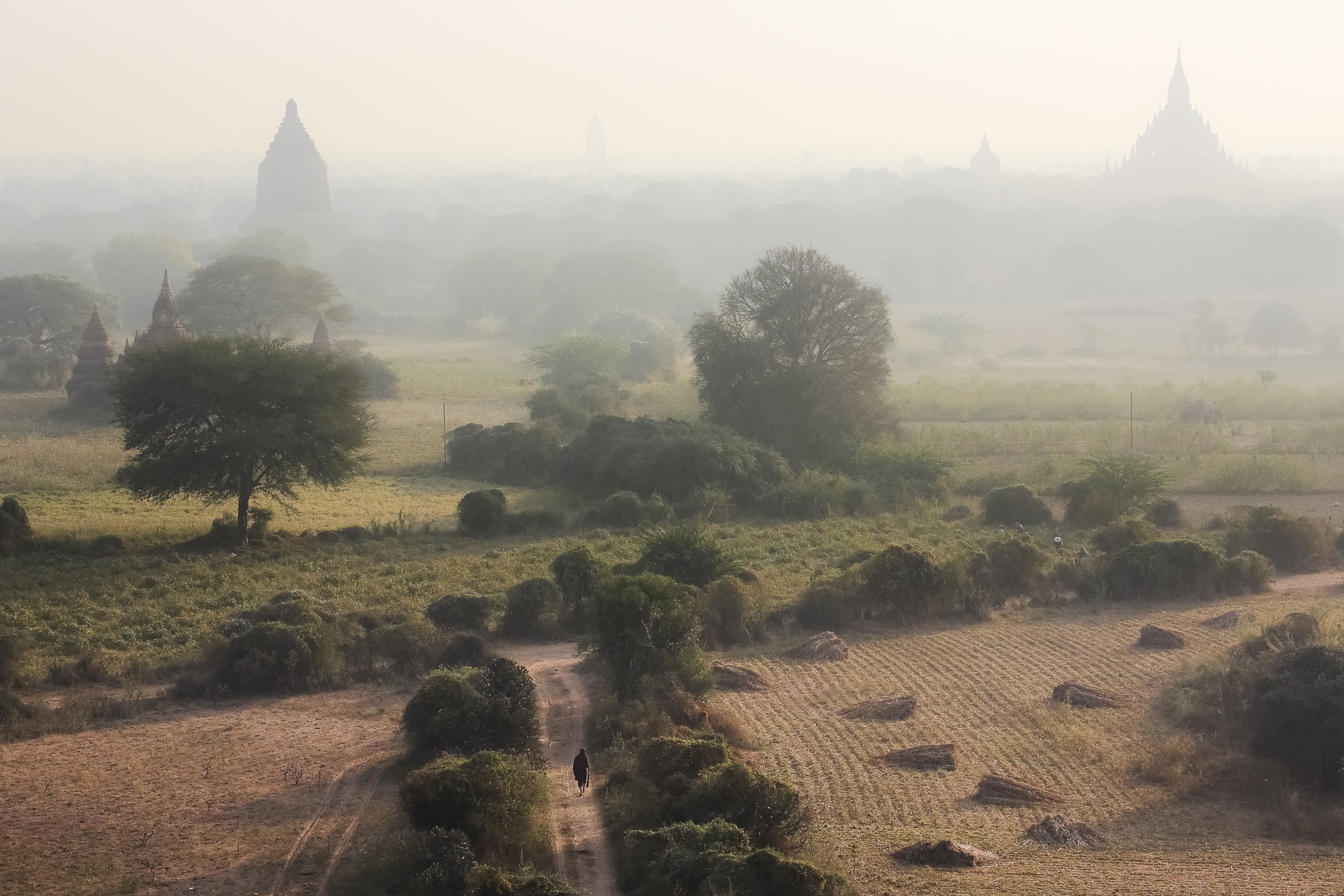Bagan đẹp nhất lúc bình minh, và hoàng hôn. Khi mặt trời lên xua tan những làn sương trên cánh đồng và lặn xuống nơi chân trời đó là lúc nó đưa những ngọn tháp cổ vào màn đêm bí ẩn.