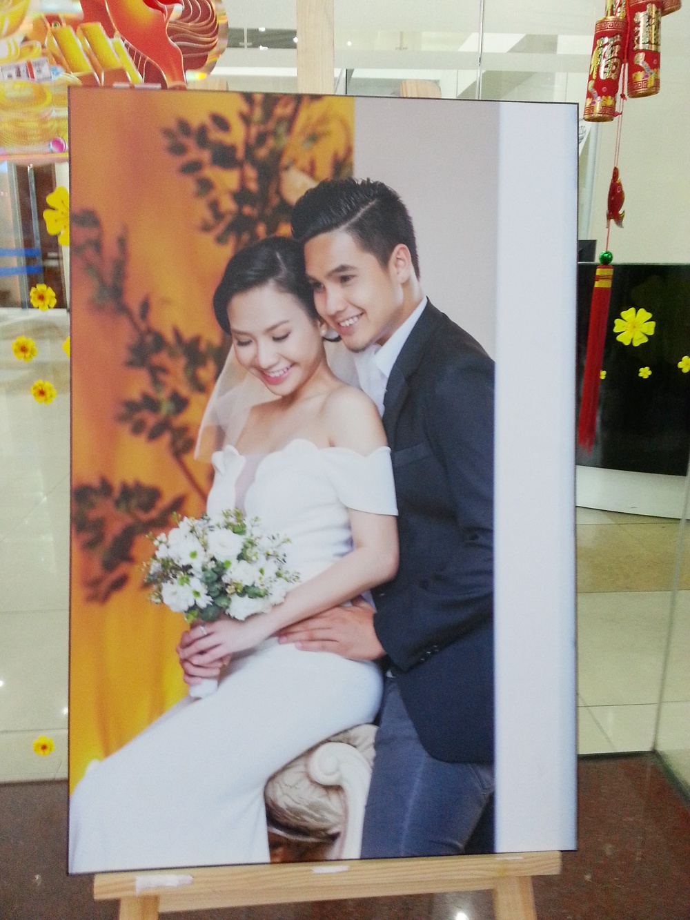 | Những tấm hình cưới ngộ nghĩnh của cặp đôi được đặt ở nhiều nơi trong nhà hàng. |