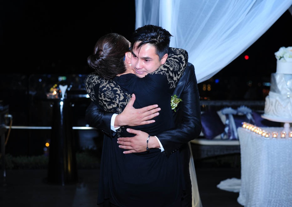 | Chỉ sau hơn một ngày thông tin hôn lễ rò rỉ, cặp đôi nhận được vô số lời chúc phúc từ bạn bè và người hâm mộ trên trang cá nhân. Trước sự xúc động của Baggio, Quỳnh Trâm ôm chặt anh để an ủi, động viên. |