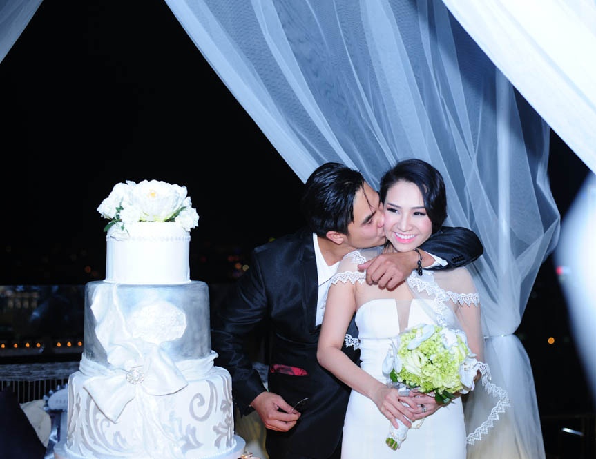 | Baggio cầm tay vợ mới cưới cắt bánh trong tiếng hò reo chúc phúc của quan khách. Cô nha sĩ sinh năm 1987 khẳng định không quan tâm tới quá khứ đào hoa của chồng: "Trong chuyện tình cảm, tôi chưa bao giờ để tâm đến quá khứ của đối phương, quan trọng vẫn là hiện tại. Nếu bây giờ anh ấy sống tốt hơn, biết suy nghĩ và chín chắn hơn, thì tại sao tôi phải ngại ngùng những chuyện trước đây của anh ấy? Với tôi, cứ tin tưởng và tôn trọng nhau là hai điều sẽ giúp bất kỳ mối quan hệ nào cũng sẽ kéo dài lâu bền hơn". |