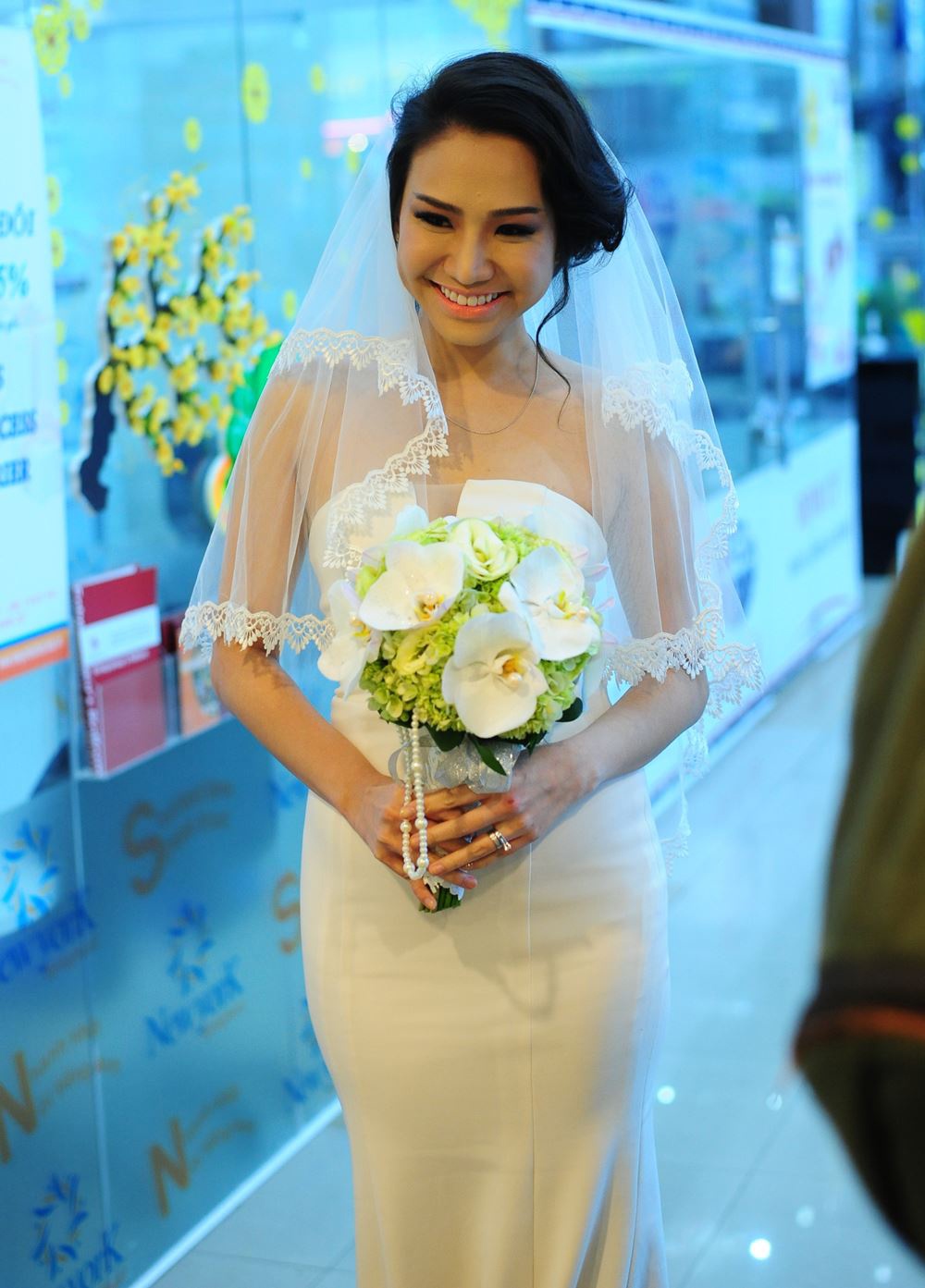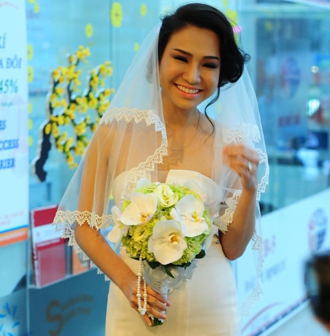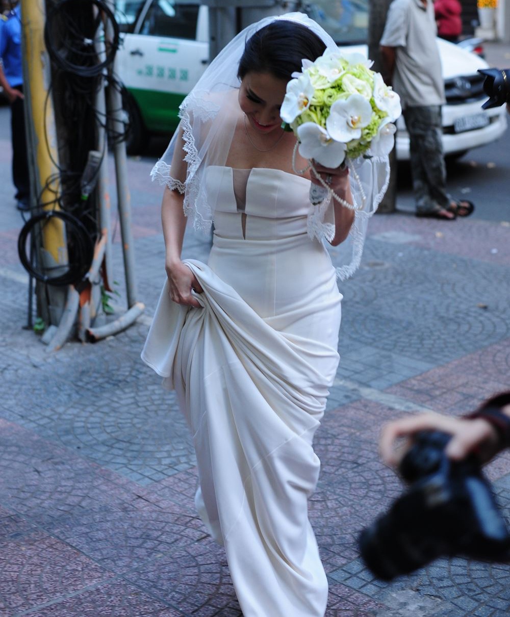 | Trước đó, vào khoảng 17h30, cô dâu Quỳnh Trâm đi taxi tới địa điểm tổ chức tiệc cưới. Vợ nha sĩ của Baggio diện chiếc váy cưới mà cô từng khoe trên trang cá nhân cách đây không lâu. Trong lần đầu tiên khoe váy cưới, Quỳnh Trâm khẳng định ngày mặc chiếc đầm đuôi cá này chính là cô khóc trong hạnh phúc. |